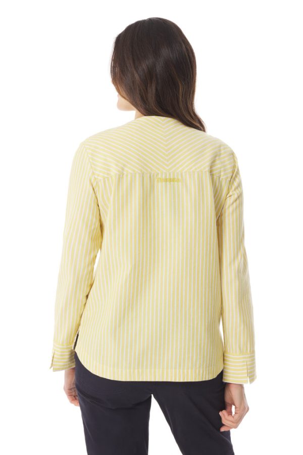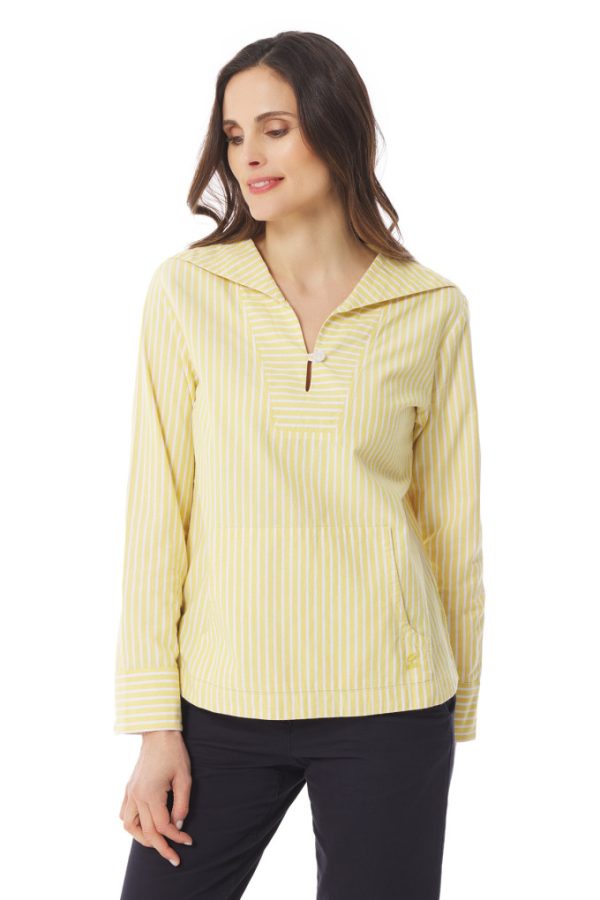 Cette blouse rayée en chambray remet le style marin au devant de la scène ! Equipée d’un col marin d’inspiration vareuse, elle vous accompagne en ville comme à la mer. C’est une blouse légère conçue dans un chambray doux et respirant, qui lui donne un aspect chiné indémodable.