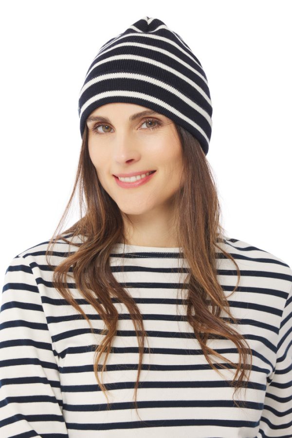 Bonnet marin rayé avec revers.