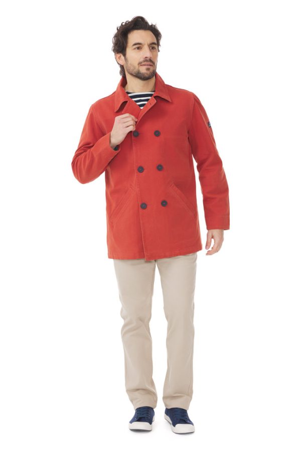 Un caban mi-saison déperlant, voilà de quoi ajouter un grain de sel iodé à vos tenues les plus citadines ! Fabriqué dans la même toile de coton que l’authentique vareuse, ce caban homme a des finitions soignées : boutons ton sur ton, grand col montant, poches intérieures et extérieures. Vous pouvez l’associer avec une marinière et un pantalon en toile.