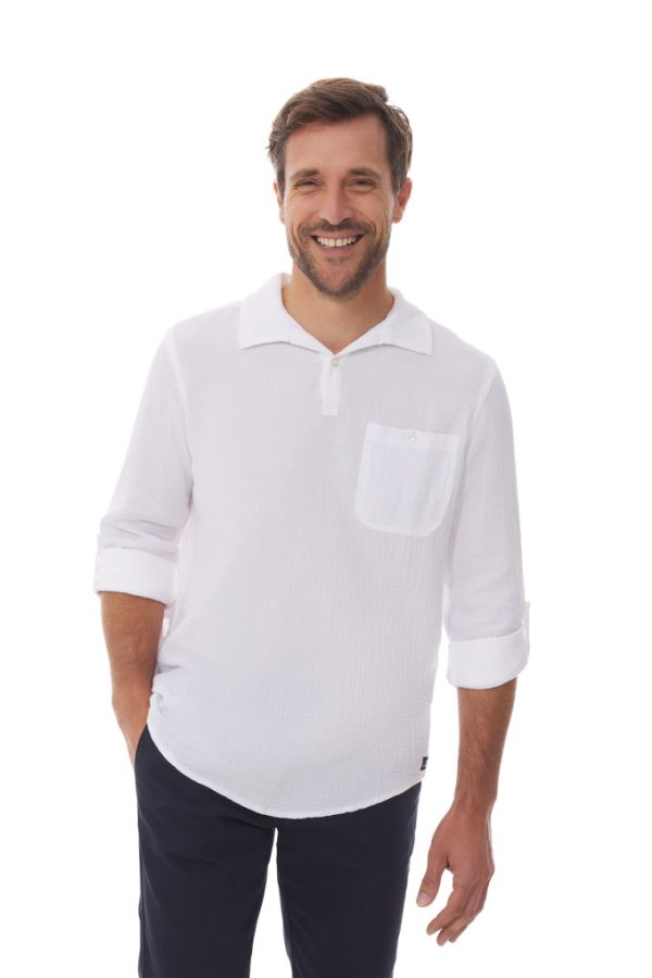 Découvrez notre chemise en gaze de coton pour homme ! Cette chemise homme est idéale pour la saison estivale avec sa matière légère. Cette chemise est à la fois élégante et travaillée avec son col inspiré de la vareuse et sa poche poitrine. Vous apprécierez sa coupe fluide et vaporeuse pour les beaux jours.