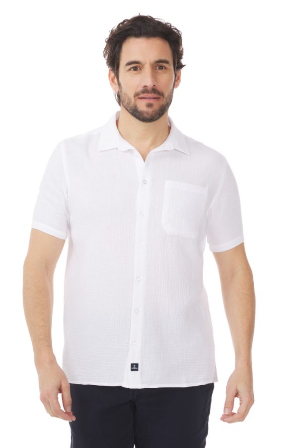 Style et légèreté sont au rendez-vous ! Profitez des beaux jours grâce à cette chemise homme en gaze de coton. On adore sa matière aérée à l’aspect gaufré, pour un look décontracté. Côté praticité ? Cette chemise à manches courtes homme arbore une poche plaquée à la poitrine pour y garder vos essentiels.