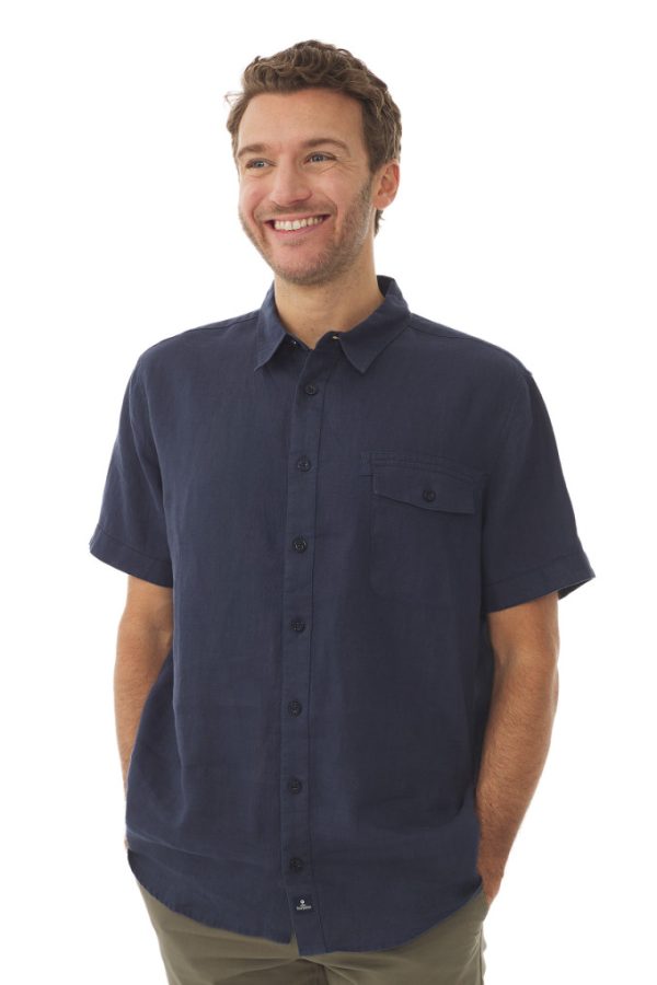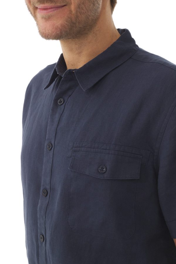 Chemisette En Ramie Bleu Marine | Chemise Mousqueton Homme
