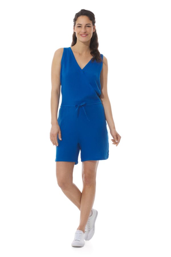 On s’en réjouit d’avance ! La combi-short se veut douce et légère à l’arrivée des beaux jours ! Craquez pour cette création en gaze de coton avec un joli col croisé. Un vêtement facile à vivre, au porté très aérien et au style gaufré. Petit plus : son cordon pour marquer la taille.