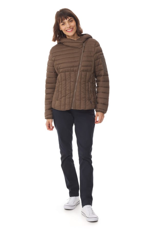 La doudoune à capuche femme est ici déclinée dans une coupe originale et enveloppante. Vous allez adorer l’originalité de son zip asymétrique. Elle présente également de nombreuses poches et se range facilement dans sa housse pour l’emmener partout !