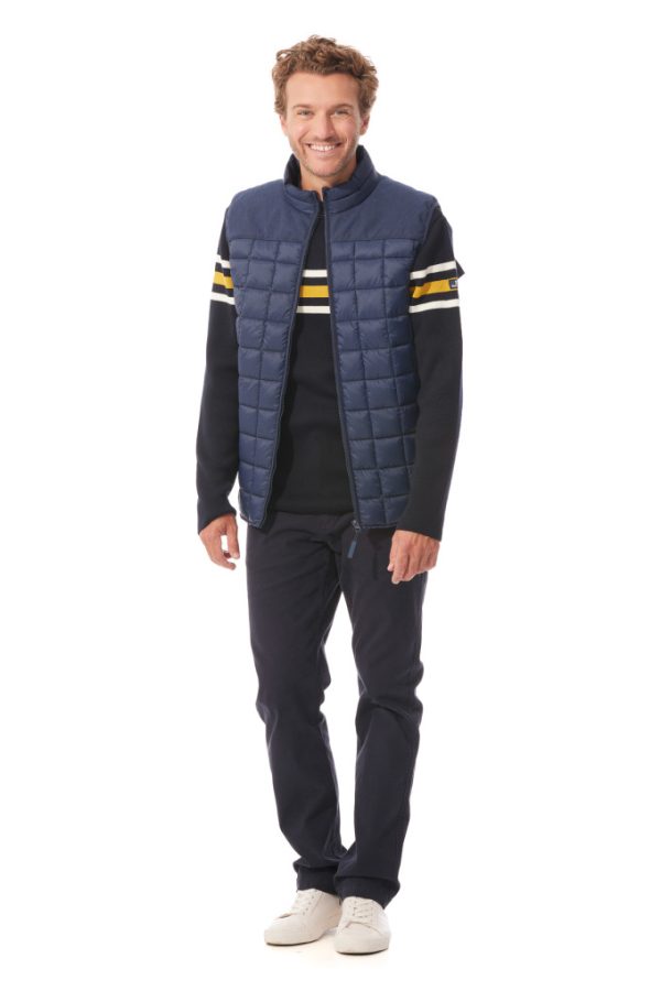Devenue indispensable dans le dressing masculin, la doudoune sans manche Oslig vous tient chaud grâce à son garnissage polyester. Petit clin d’œil marin avec les empiècements en toile de vareuse aux épaules qui donnent sa singularité à cette doudoune.