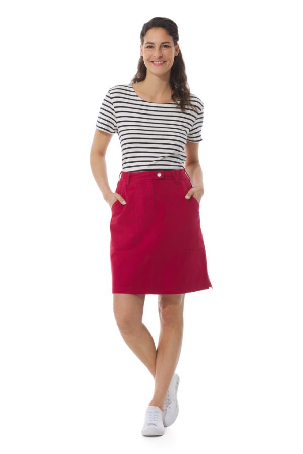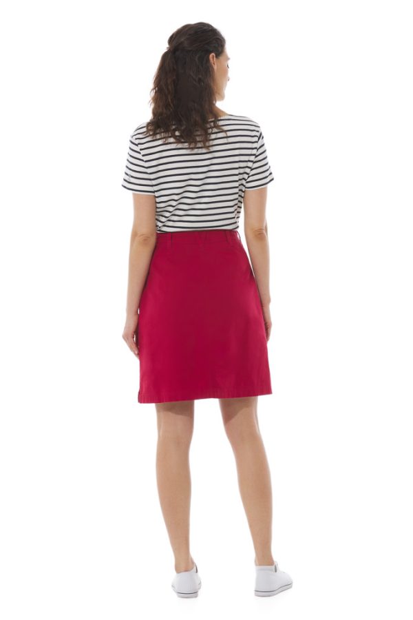 Découvrez cette jupe trapèze en toile souple et résistante. Déclinée en près de dix teintes, cette jupe présente une longueur genou et une taille mi-haute. Accordez-la facilement à la marinière Marina.