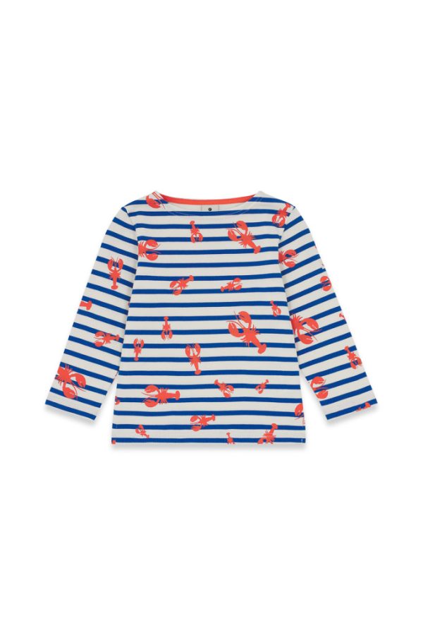 Les homards s’emparent de nos rayures ! Retrouvez ce nouveau motif, clin d’œil au monde marin dans le vestiaire de votre moussaillon. Accompagnez cette marinière en coton d’un ciré et direction l’école avec un look 100% marin.