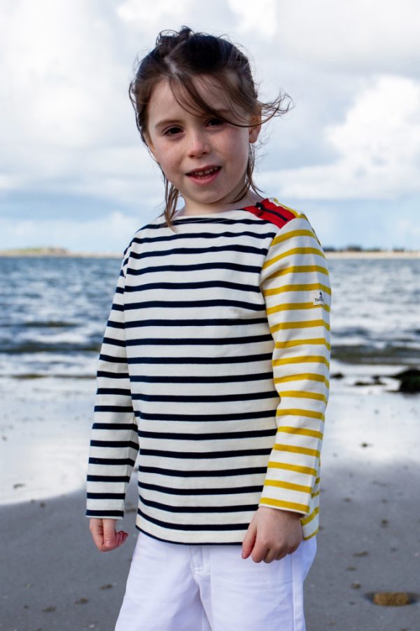 Marjan Kid incarne bien l’expression de la marinière « dans tous ses états » : mix de couleurs, zip à l’épaule, manches bicolores, votre enfant va adorer ce jeu de couleurs ! Marjan Kid est conçu dans la même matière que notre collection de marinières, un jersey de coton à la douceur et au confort incontestables. A porter toute l’année !