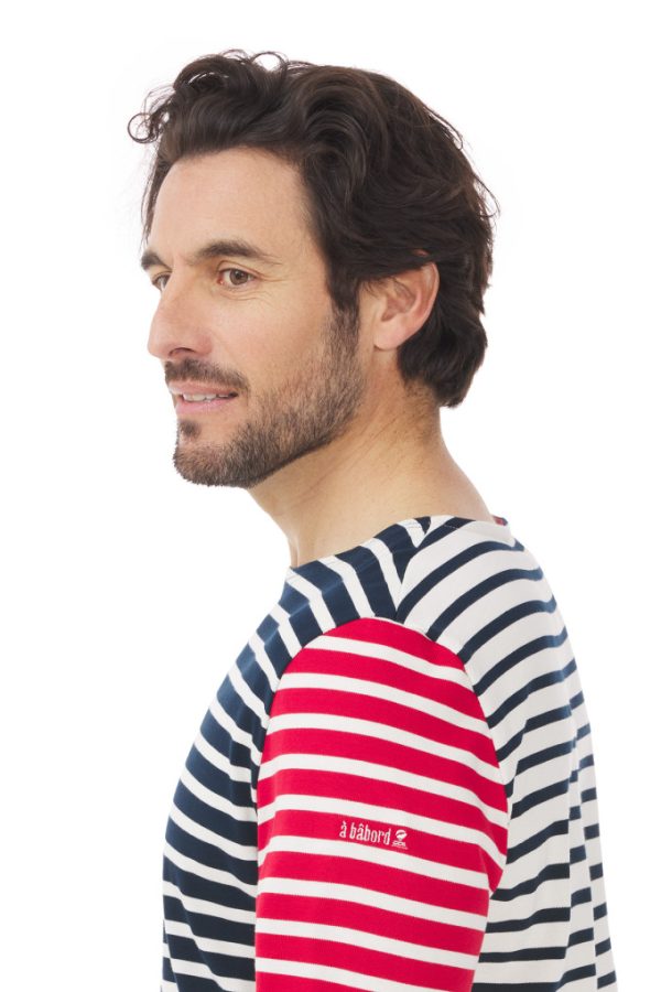 Marinière homme manches longues avec rayures contrastées.