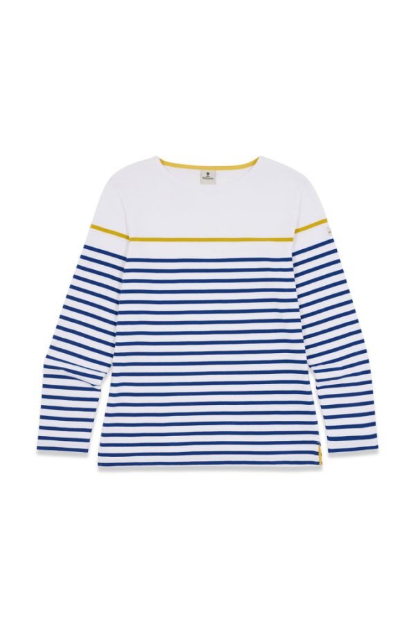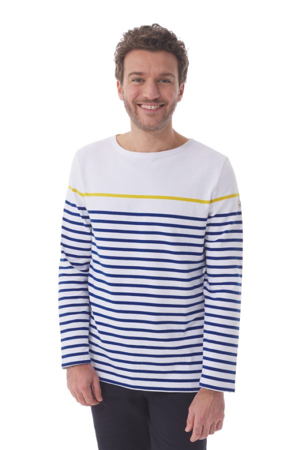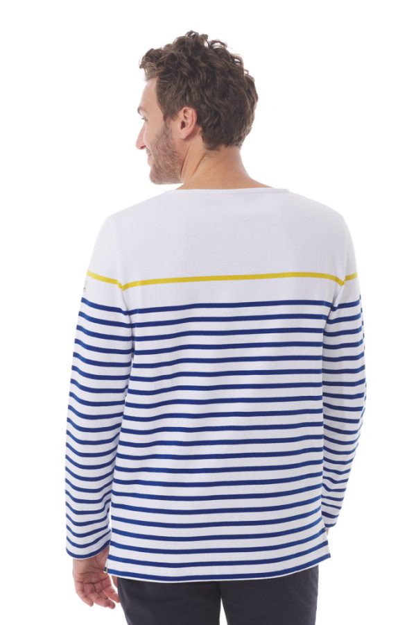 La marinière mixte Mario se pare de rayures multicolores. Cet essentiel du vestiaire marin conserve bien évidemment les codes de la traditionnelle marinière : coupe droite, encolure arrondie et joli jersey de coton.