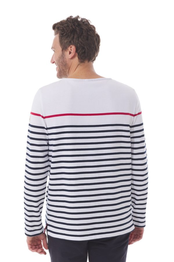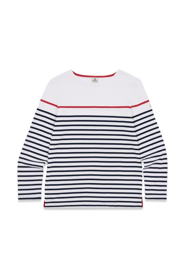 Jouez la carte de l’originalité avec la marinière relevée d’une rayure unique à la poitrine ! Même coupe et même matière que l’incontournable modèle Mario, cette création singulière donne du pep’s à votre look.