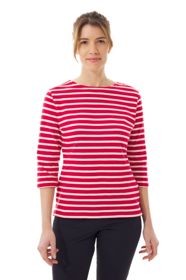 Qui a dit que la marinière était forcément ample et à manches longues ? Mousqueton revisite la marinière avec ce modèle en jersey de coton et à manches 3/4. Joliment ajustée et élégante, Marina se porte très bien sur une jupe ou un pantalon.