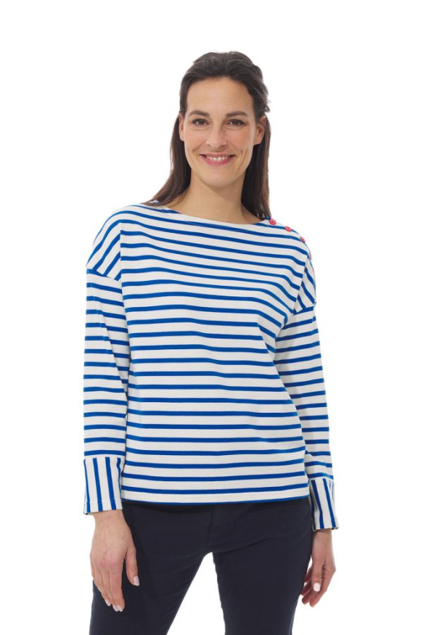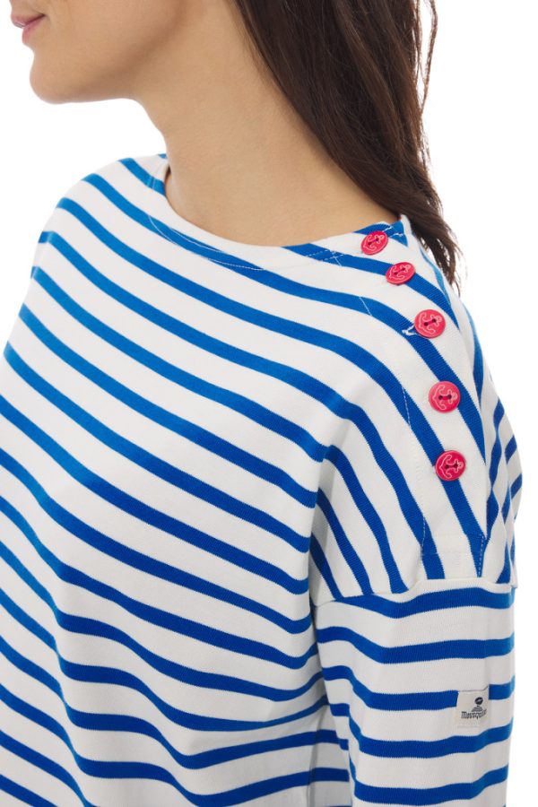 La famille des marinières s’agrandit cette saison ! Découvrez Madalen, la marinière femme au volume ample et aux jolis jeux de rayures opposées sur les poignets. Vous apprécierez son épaule boutonnée qui lui donne une touche d’originalité.