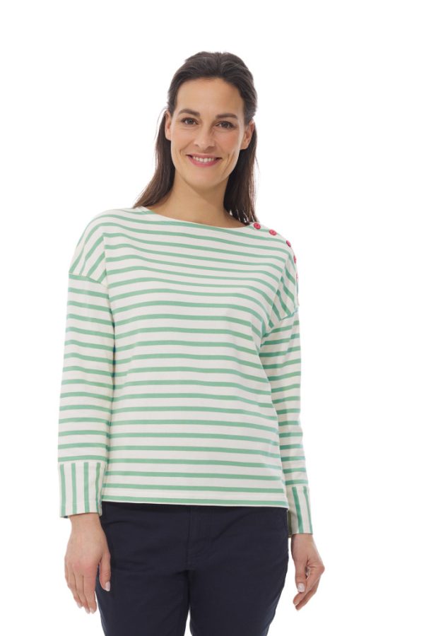 La famille des marinières s’agrandit cette saison ! Découvrez Madalen, la marinière femme au volume ample et aux jolis jeux de rayures opposées sur les poignets. Vous apprécierez son épaule boutonnée qui lui donne une touche d’originalité.