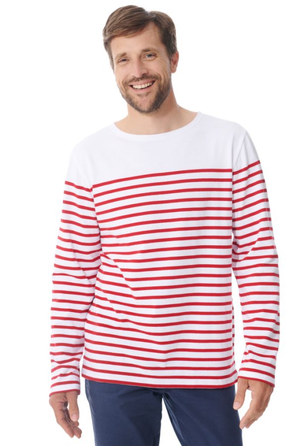Symbole du style marin, la marinière fait partie intégrante du patrimoine français. Avec la Mario, nous vous proposons une version masculine au caractère affirmé, où les rayures placées apportent une touche esthétique. Tricotée dans un jersey de coton épais, cette marinière rouge allie confort et robustesse, fidèle aux exigences du quotidien comme aux embruns. Son design s’inspire des quais de pêche et de l’univers portuaire, incarnant pleinement l’esprit Mousqueton : une mode authentique, enracinée, et toujours prête à prendre le large.