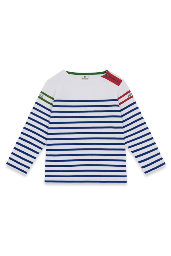 Amoureux de la Bretagne ? Apprenez à vos enfants les codes de la navigation en mer avec notre marinière Marjan Kid. Une création qui reprend le vocabulaire maritime sur chacune des manches : Ba pour bâbord en rouge et tri comme tribord en vert. Un modèle unique et original pour que vos enfants deviennent des vrais matelots !