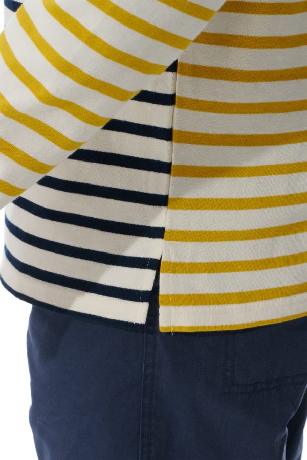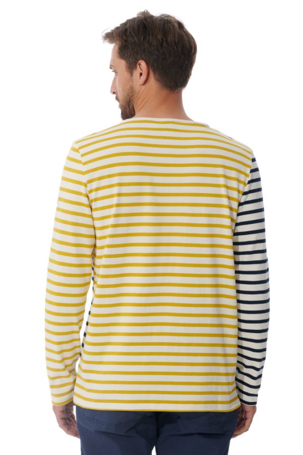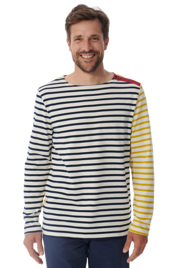 Pour compléter votre collection, nous avons imaginé une nouvelle version de la marinière avec une touche de fantaisie : un jeu de rayures inversées.