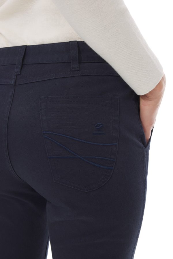 Pour une silhouette féminine tout en confort, optez pour le pantalon femme en toile stretch. Ses poches italiennes, sa braguette zippée et sa coupe V au dos donnent une allure jean très urbaine. Combinez ce pantalon avec une jolie marinière de notre collection pour un look intemporel !