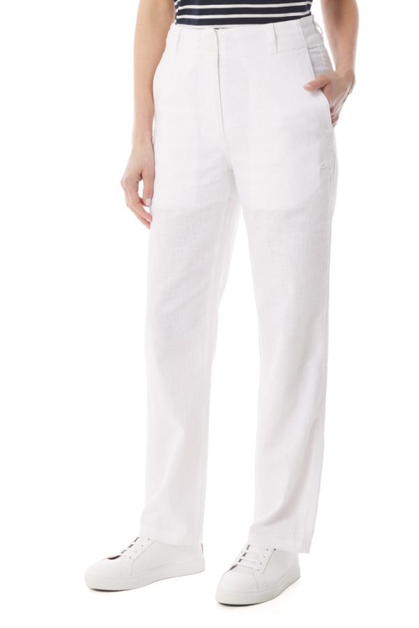 Confortable et léger, ce pantalon femme présente une taille haute et une coupe droite. Laissez-vous porter par la sensation de fraîcheur de sa matière en ramie, parfaite pour les beaux jours. Facile à porter, ce pantalon taille haute s’associe bien aux t-shirts de la gamme ainsi qu’à la collection de marinières Mousqueton.