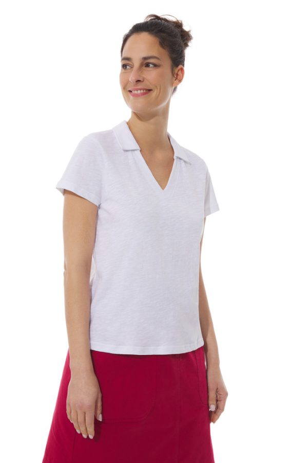 Avec sa coupe cintrée et son joli col V, ce nouveau polo femme met en valeur votre silhouette ! Vous apprécierez l’esprit polo sans boutonnage qui donne un ton plus décontracté à vos looks. Sentez-vous à l’aise dans ce coton bio léger et confortable. A retrouver dans 5 couleurs !