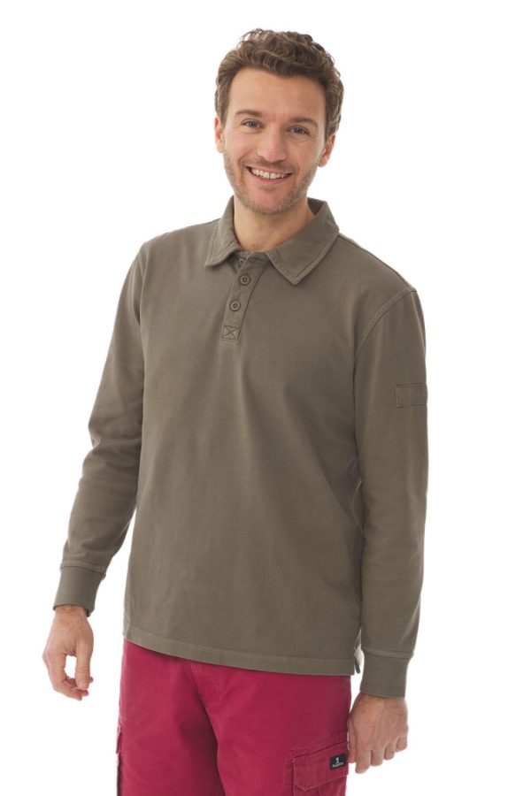 Polo Manches Longues Vert Kaki | Polo, T-Shirt Mousqueton Homme