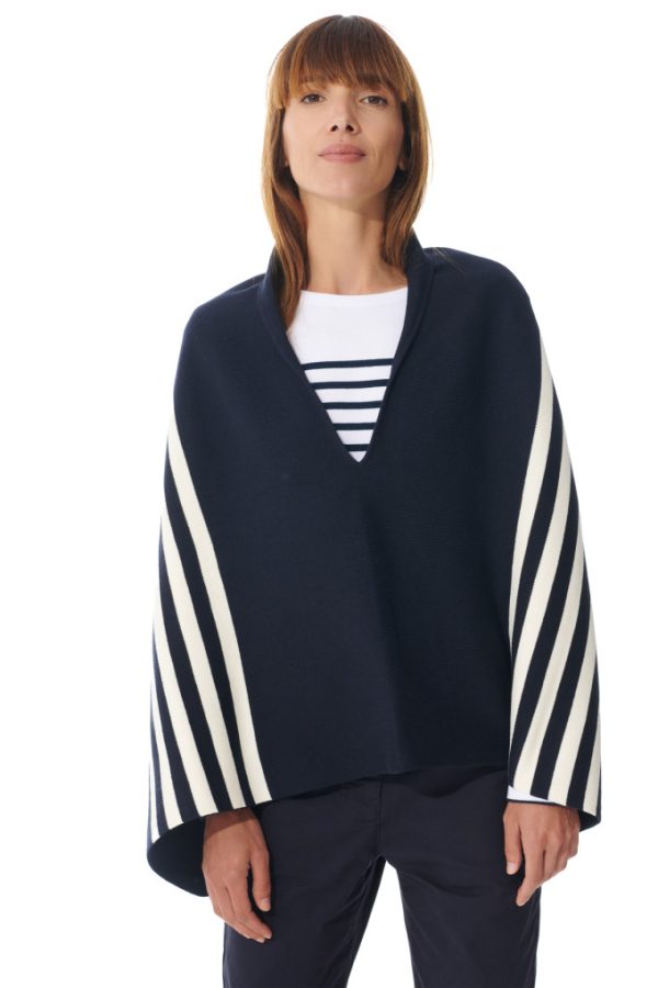 Découvrez le poncho femme en coton épais, une création avec la touche marine en plus ! Vous apprécierez la douceur de son coton et l’originalité de ses rayures de largeur inégale. Ajoutez un brin d’élégance iodée à votre tenue avec ce poncho bicolore !