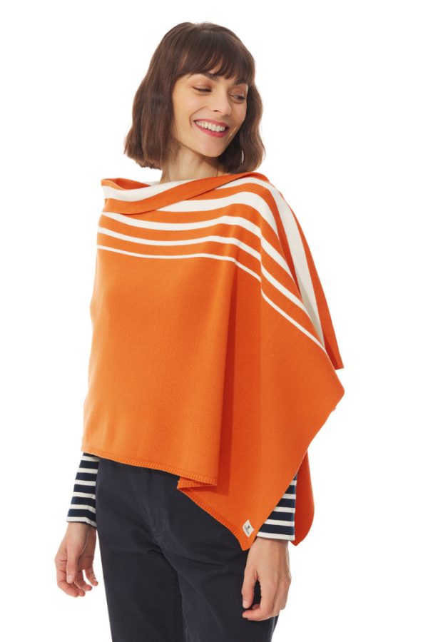 Grand classique de la collection depuis quelques années, le poncho se décline dans un nouveau style de rayures très original !