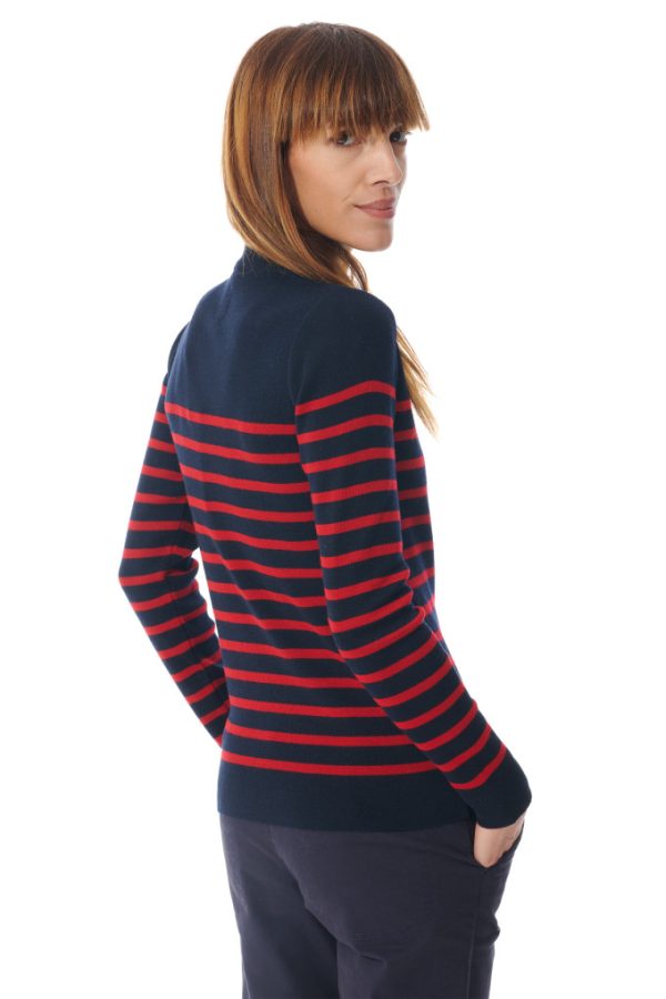 Pull marin femme rayé à manches longues.