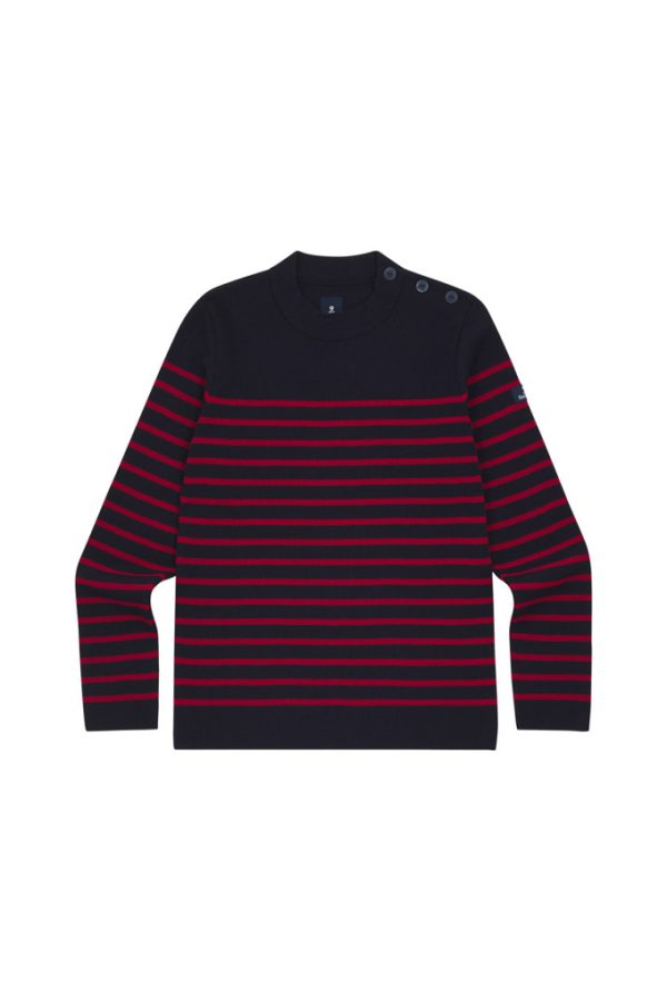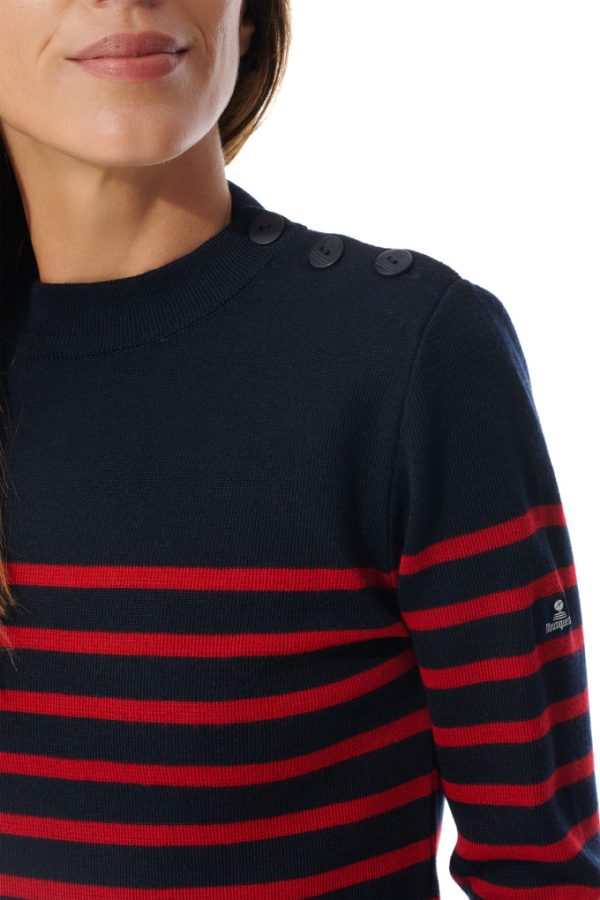 Le boutonnage sur l’épaule gauche est fidèle au véritable pull marin.