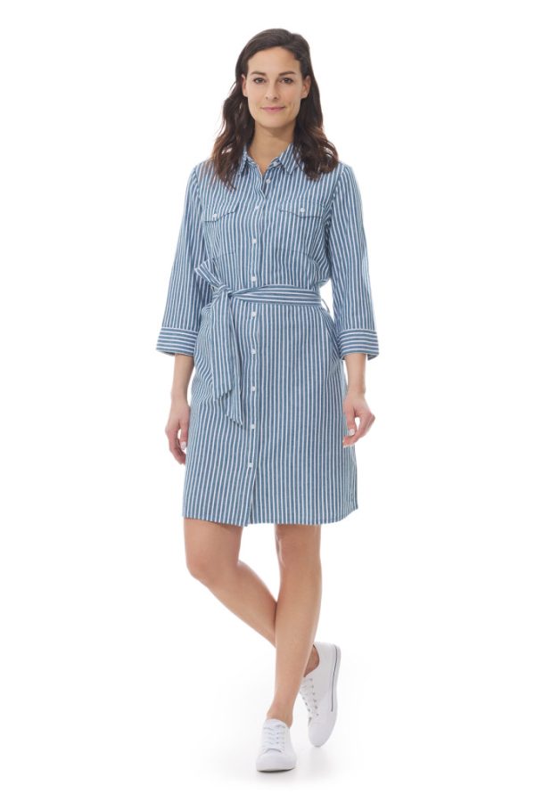 Profitez de journées ensoleillées avec la robe chemise rayée ! Ses rayures réveillent votre look et apportent du style à votre look. Adoptez ce chambray de coton qui garantit un confort optimal pour cet été. Petit plus : sa ceinture ajustable à votre guise !