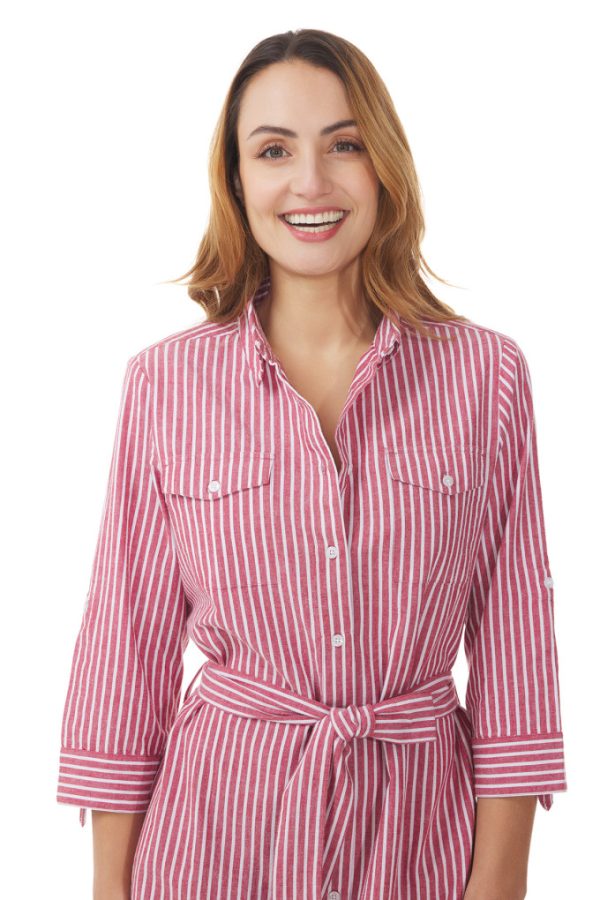 Profitez de journées ensoleillées avec la robe chemise rayée ! Ses rayures réveillent votre look et apportent du style à votre look. Adoptez ce chambray de coton qui garantit un confort optimal pour cet été. Petit plus : sa ceinture ajustable à votre guise !