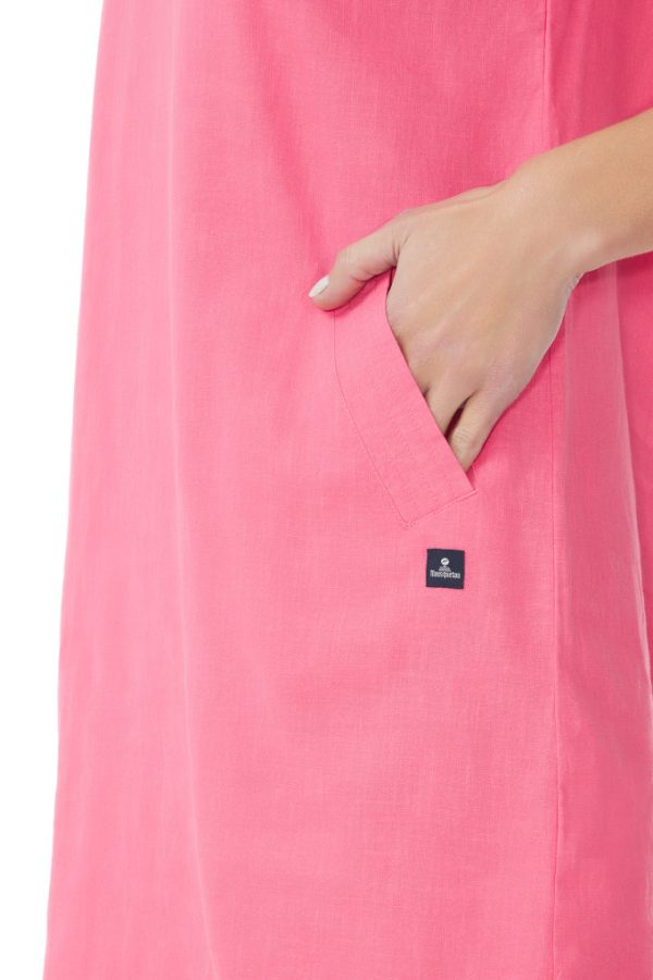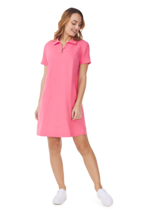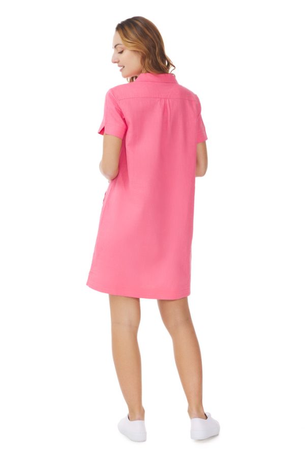 Confortable et respirante, cette robe à manches courtes ne vous quitte pas de l’été ! C’est une robe à porter en toute décontraction, en sandales ou en baskets, grâce à sa coupe légèrement évasée. Craquez pour sa touche d’originalité avec son col boutonné qui rappelle celui de la vareuse. Cette robe à manches courtes est conçue dans un mélange ramie et coton, qui vous procure confort et aisance.