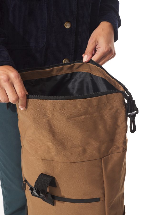 – Fermeture rolltop zippée et boucle plastique détachable.