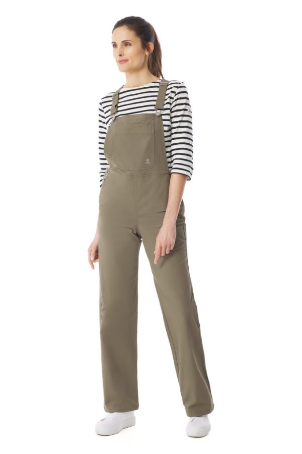 Coupe salopette avec tablier ajustable, jambes longues droites.