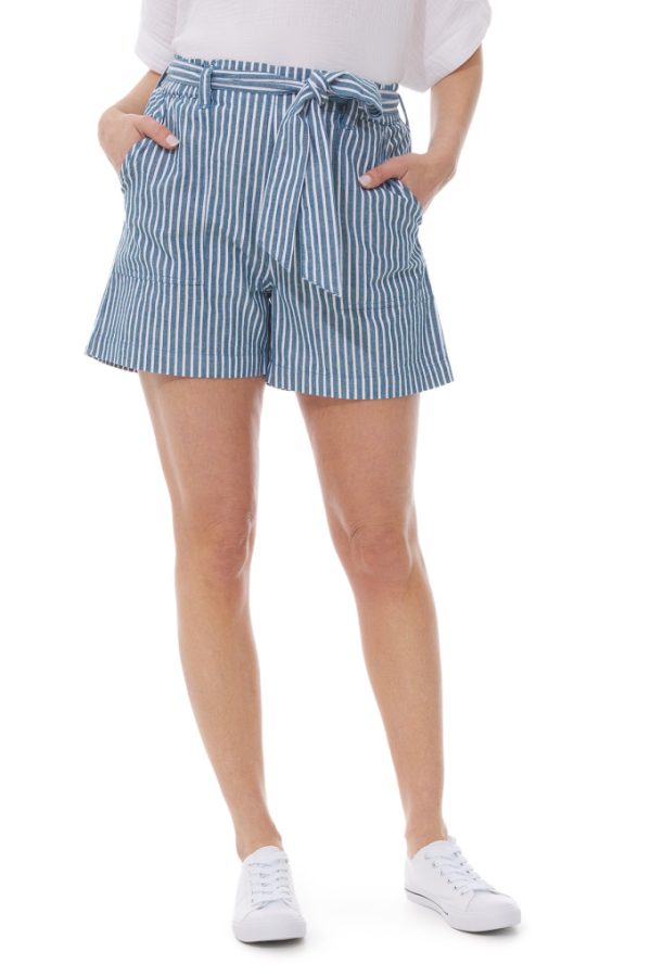 Sublimez votre look cet été avec ce short au style marin affirmé ! Les rayures s’invitent sur notre short léger en chambray. On adore sa taille haute très féminine et son confort indéniable pour vos journées plages ! Petit plus : ses rayures verticales allongent en finesse la silhouette.