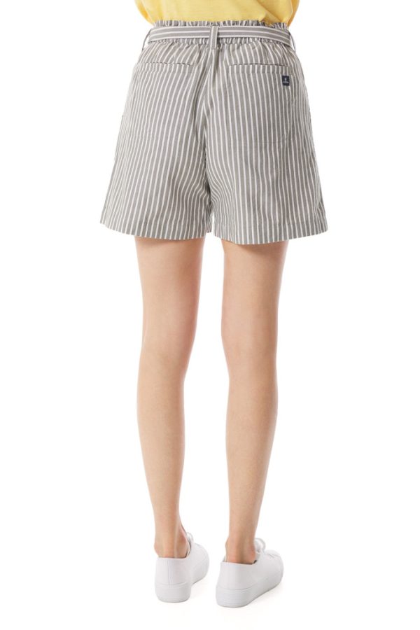 Short Rayé Taille élastiquée Vert Kaki Et Blanc | Bermuda, Short Mousqueton Femme