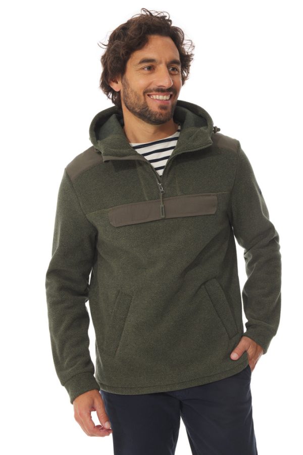 Découvrez Ploermel, le sweat polaire homme en fibre polyester 100% recyclée. Ses poches doublées polaire, sa capuche et son col montant zippé vous protégeront du froid. On adore cette grande poche à la poitrine qui affirme le style sportswear. A porter toute l’année.