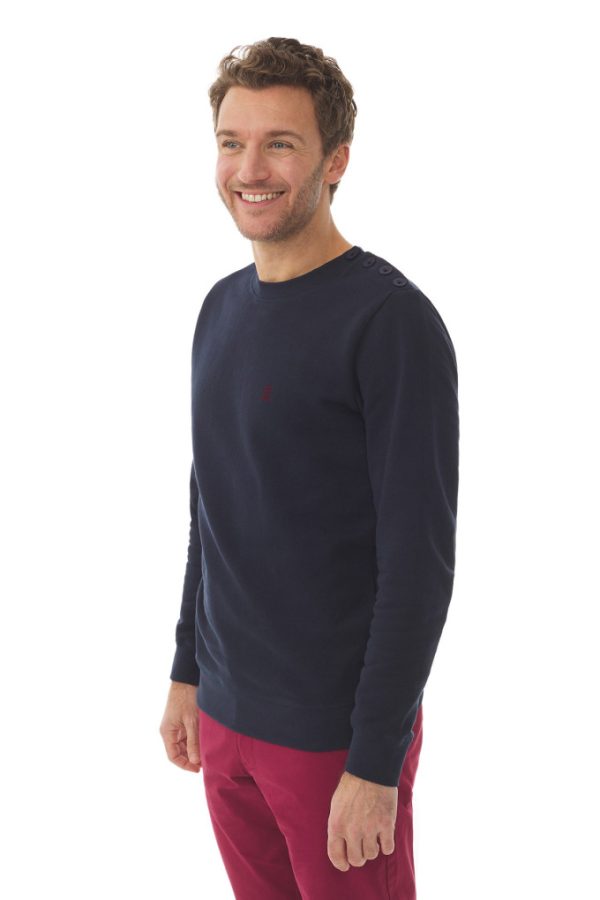 Envie d’un pull au style sportswear ? Découvrez le sweat-shirt Kemaneg en maille toute douce. Une coupe sweat-shirt souple et une épaule boutonnée pour le clin d’oeil au pull marin. Ses bords-côtes ajustent les poignets et la taille pour une jolie silhouette. Kemaneg sera parfait pour vous accompagner à la mi-saison.