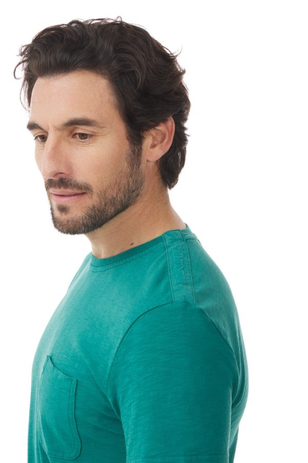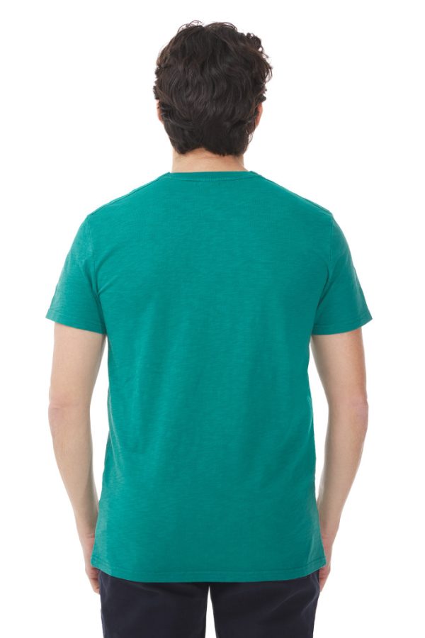 Craquez pour le t-shirt manches courtes homme en jersey flammé de coton bio. Ce basique affiche une pointe d’originalité par le joli relief de sa matière et sa poche poitrine. A porter avec un bermuda en toile pour un look casual décontracté.