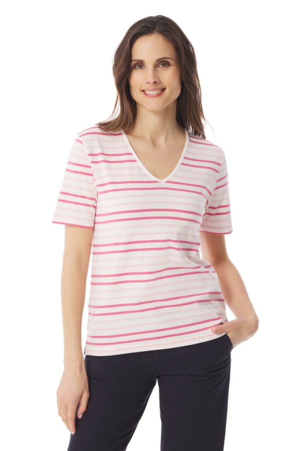 Vous apprécierez le col V de ce t-shirt qui libère le cou et souligne la silhouette !