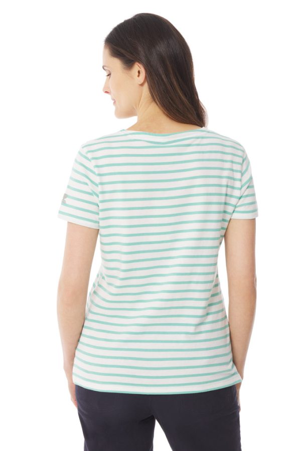T-shirt Rayé Manches Courtes Vert Turquoise | Polo, T-Shirt Mousqueton Femme