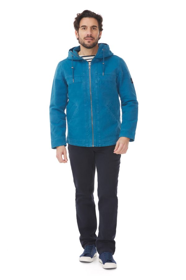 En bord de mer ou en ville, cette veste en toile homme est votre alliée tout-terrain ! Elle se démarque par sa coupe moderne : ajustée avec des découpes au niveau de la poitrine et des manches. Cette veste à capuche est conçue dans une toile de coton similaire à la vareuse, solide, déperlante et coupe-vent. Son atout ? Sa technique de teinture pigmentaire qui lui apporte un look délavé et vintage.
