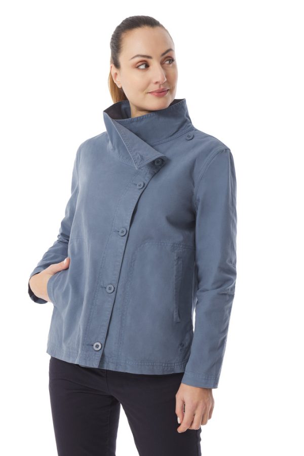 Yaneg, c’est la veste légère qui vous accompagne vers les beaux jours ! Un grand col montant asymétrique, une belle coupe féminine évasée et un boutonnage décalé, cette nouveauté va vous plaire. Col à porter bien remonté pour montrer sa coupe en biais ou bien ouvert et il se posera joliment sur les épaules.