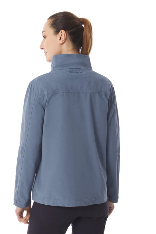 Veste non doublée femme au grand col boutonné.