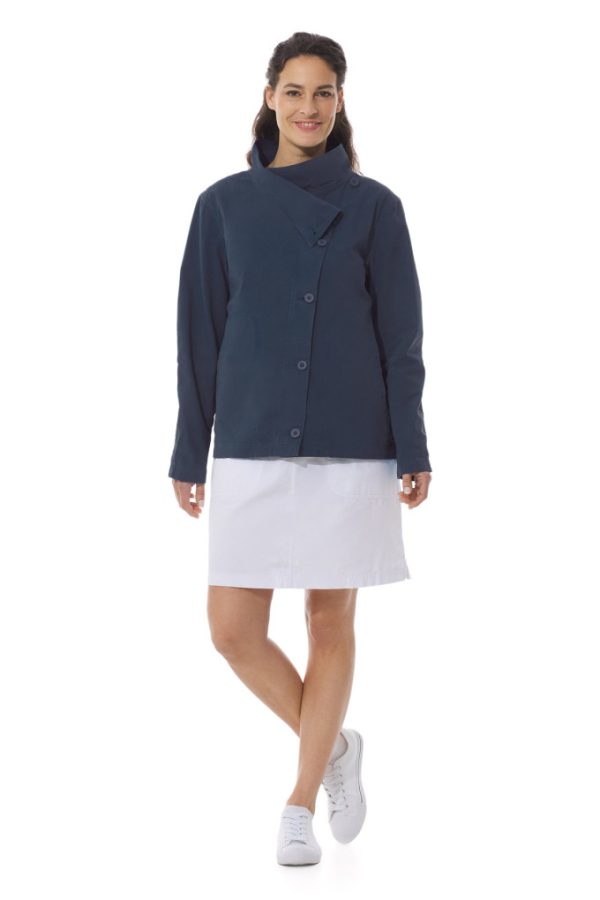Yaneg, c’est la veste légère qui vous accompagne vers les beaux jours ! Un grand col montant asymétrique, une belle coupe féminine évasée et un boutonnage décalé, cette nouveauté va vous plaire. Col à porter bien remonté pour montrer sa coupe en biais ou bien ouvert et il se posera joliment sur les épaules.